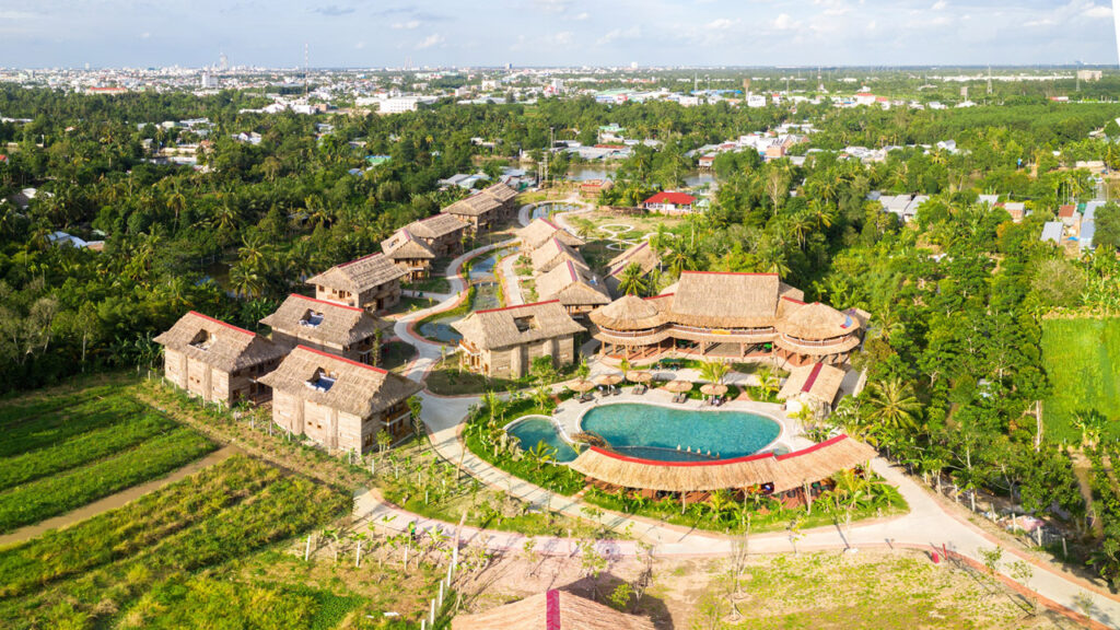 Đây là khu nghỉ dưỡng được xây dựng giữa không gian thiên nhiên miền Tây sông nước, bốn mùa xanh ngát, với bầu không khí được lọc sạch bởi làng cây tự nhiên xung quanh.