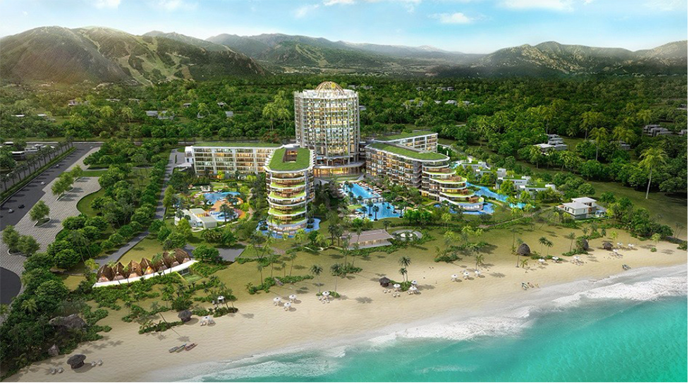 Hình ảnh khách sạn còn được lấy cảm hứng sáng tác từ viên đá Opal đa sắc màu. Để chúng lung linh, tỏa sáng từ đổi màu khác nhau đem đến sự hoa lệ. Dự án này còn có quy mô 15 ha bao gồm 120 phòng khách sạn, 76 căn biệt thự hạng sang, và 42 căn sky villas view tuyệt đẹp khi nhìn ra biển.